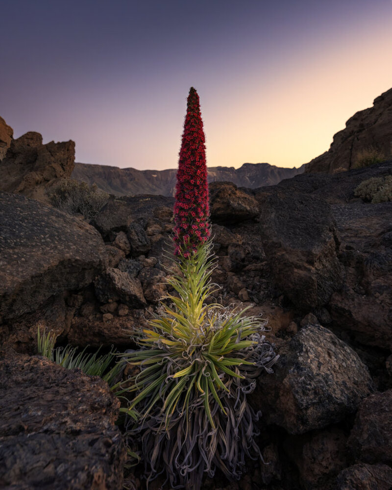 Es war genau die Auszeit, die ich mir immer gewünscht hatte – die perfekte Mischung aus Ruhe und Erholung. Doch die Kamera blieb immer an meiner Seite, denn ich wusste, dass dieser Ort etwas Magisches in mir wecken würde. Eine Woche, in der ich unter dem kanarischen Sternenhimmel stand und das Gefühl hatte, völlig mit der Natur verschmolzen zu sein. Jede dieser Nächte berührte mich tief – Momente, die ich mit jeder Faser meines Körpers spürte. In diesen Augenblicken ging ein Traum, der lange in mir verbrannte, endlich in Erfüllung: ein Bild von blühenden Tajinasten. Für mich sind sie ein starkes Symbol für die vergängliche Schönheit und die unaufhörliche Kraft des Lebens, inmitten der Widrigkeiten.